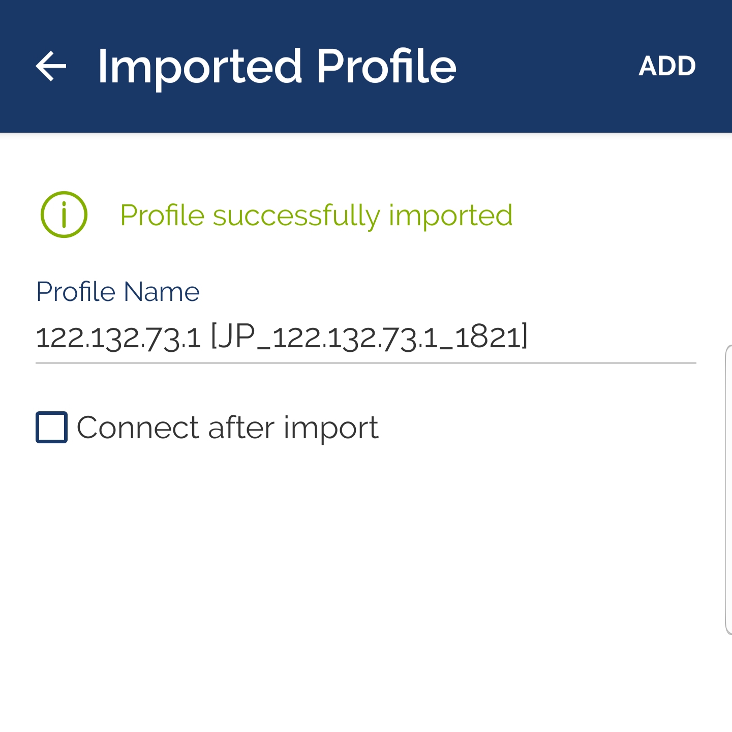 화면의 vpn프로필 목록 중 원하는 국가의 프로필을 누르면 프로필의 추가가 진행됩니다.
