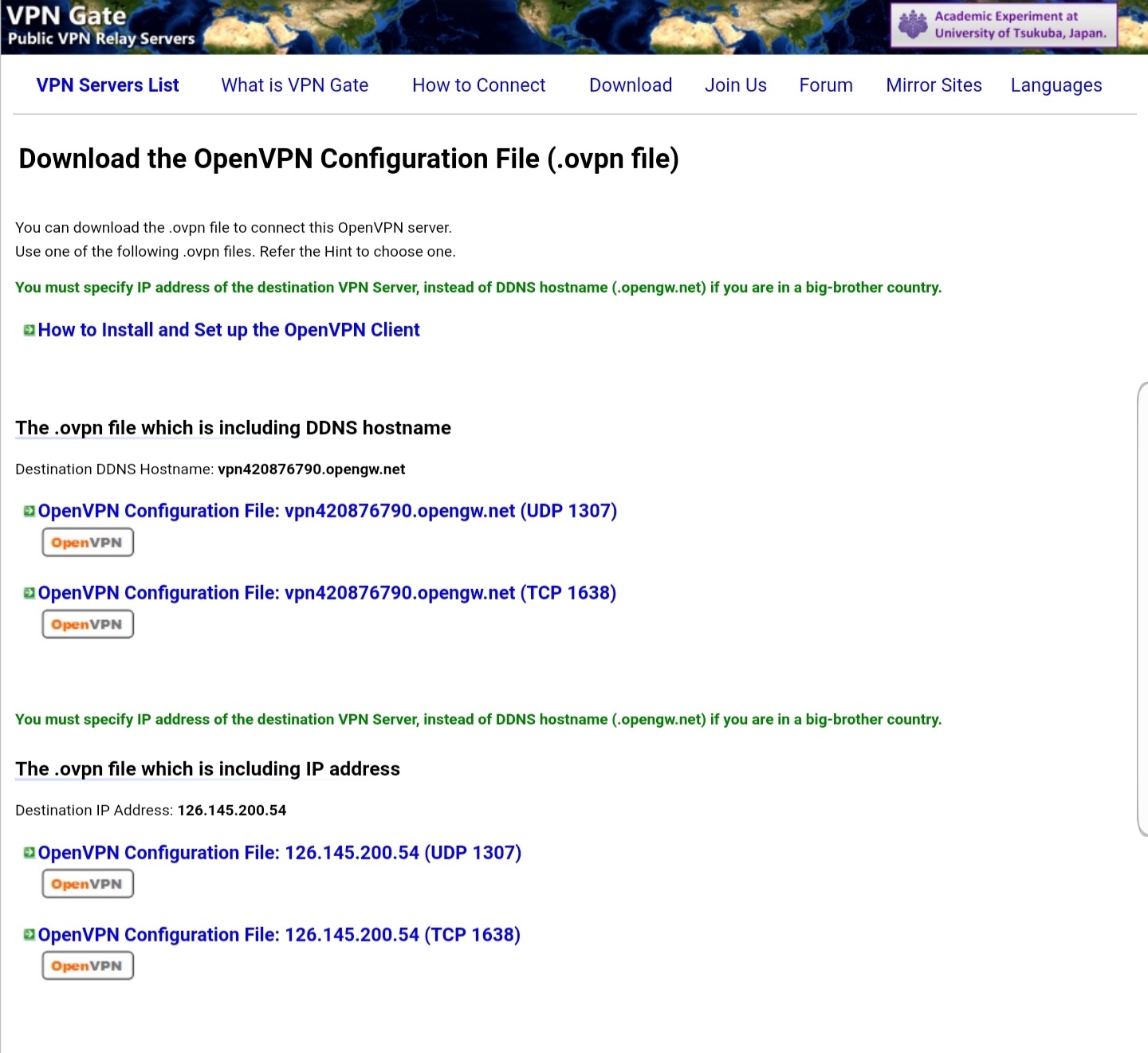 VPN Gate - Public Free VPN Cloud by Univ of Tsukuba, Japan